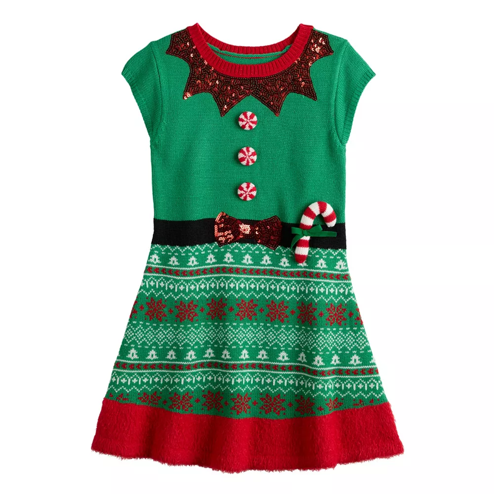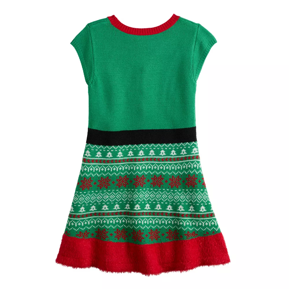 She’ll love to dress up in the seasonal style of this girls’ Celebrate Together fit and flare Christmas sweater dress.
