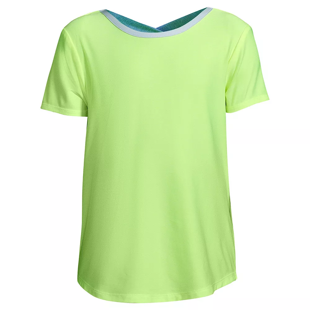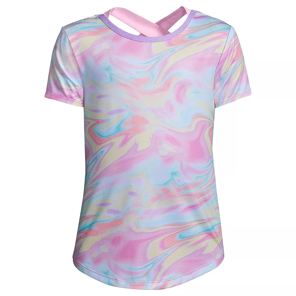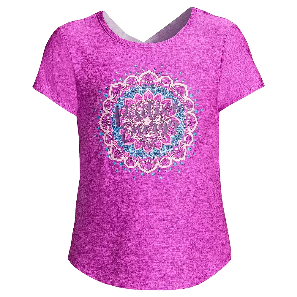She’ll be ready to get up and go in this girls’ Lands’ End performance tee with crisscross back straps.