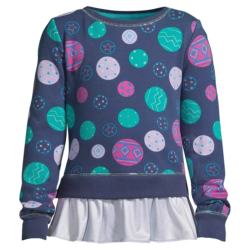 Lands’ End defines cute and cozy style with this girls’ fleece ruffled-hem top.