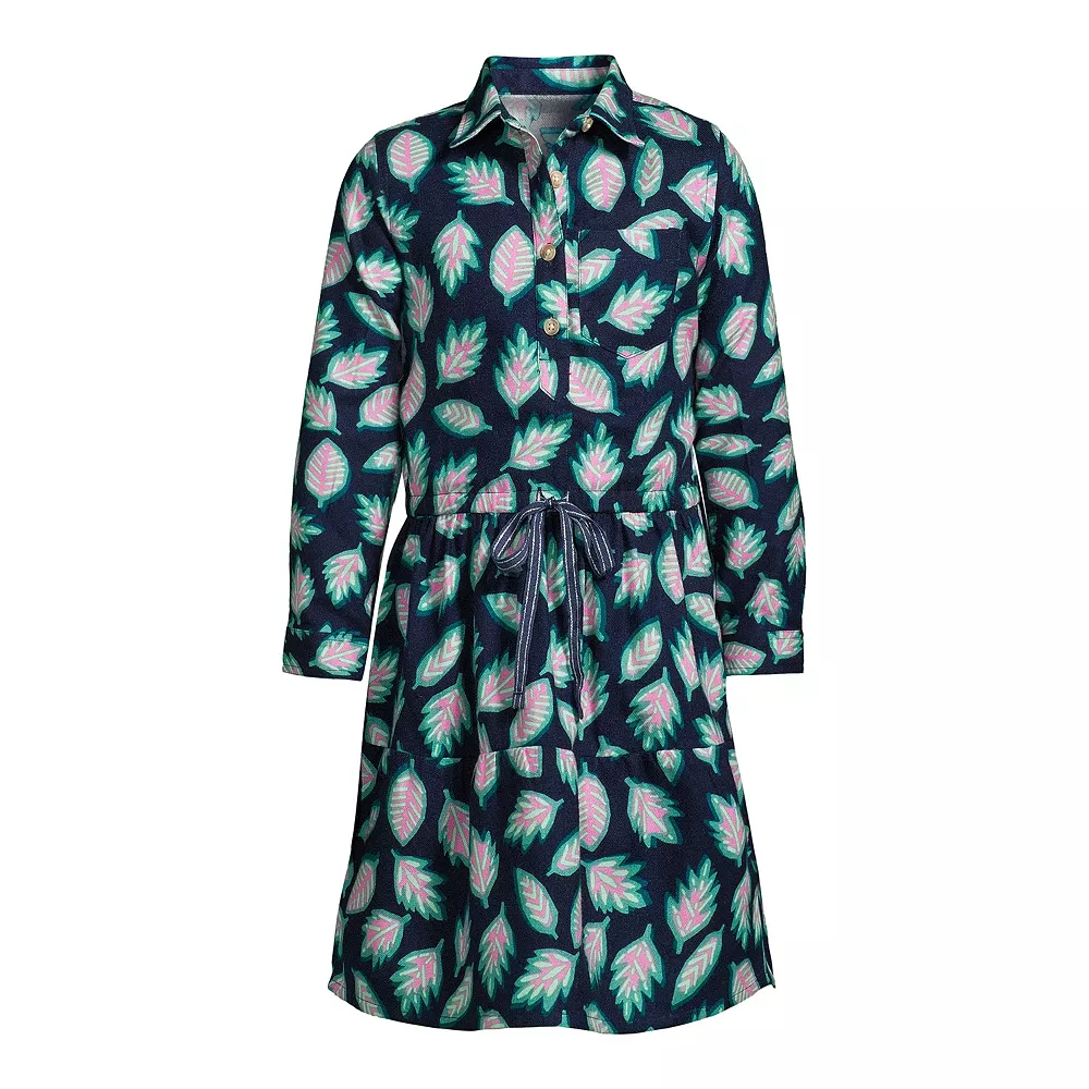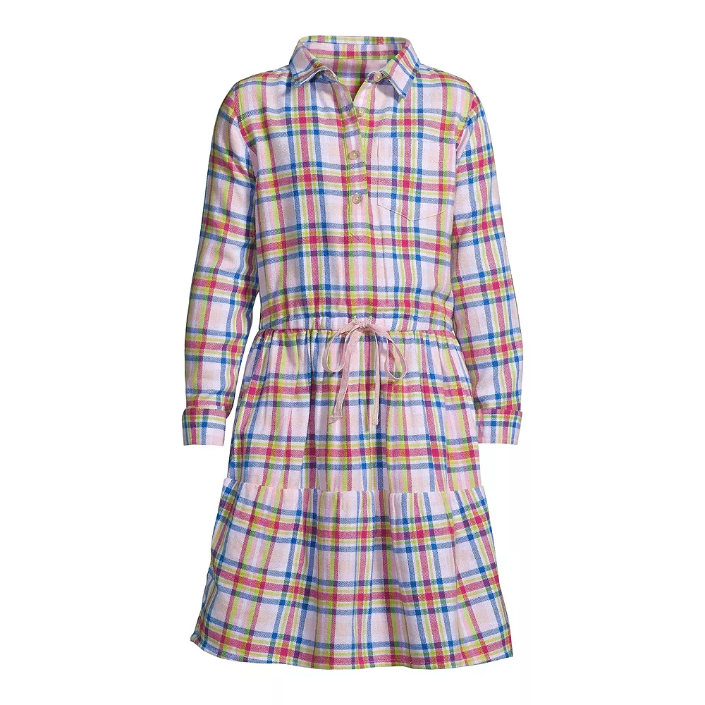 Flannel charm abounds on this girls’ Lands’ End tie-front dress.