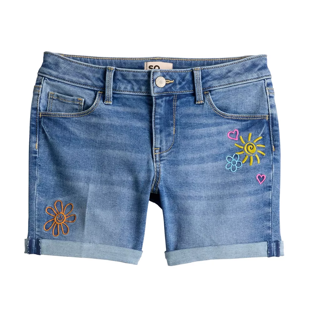 SO defines trendy and cute warm-weather style with these girls’ denim midi shorts.