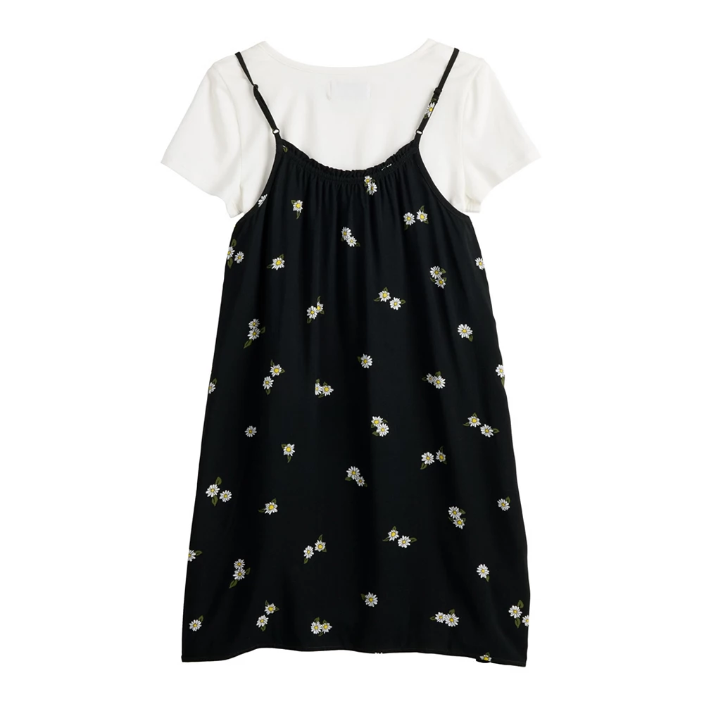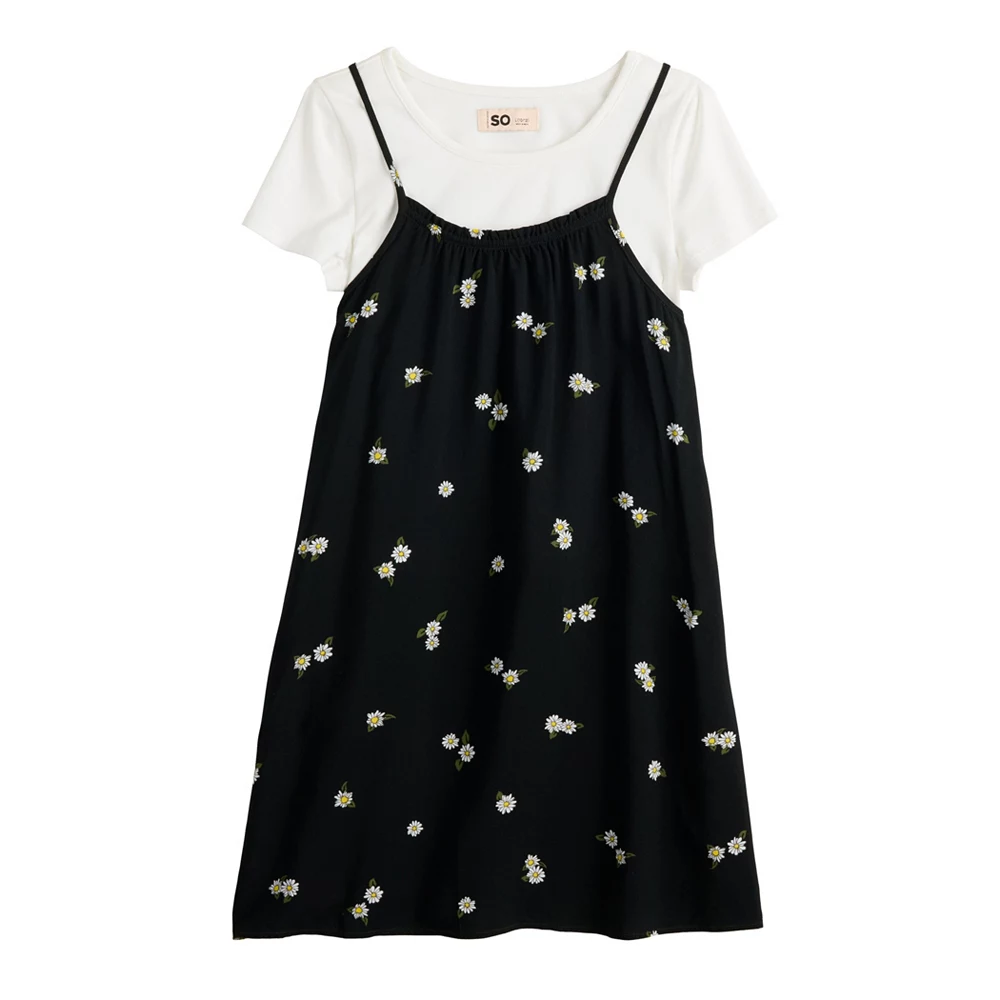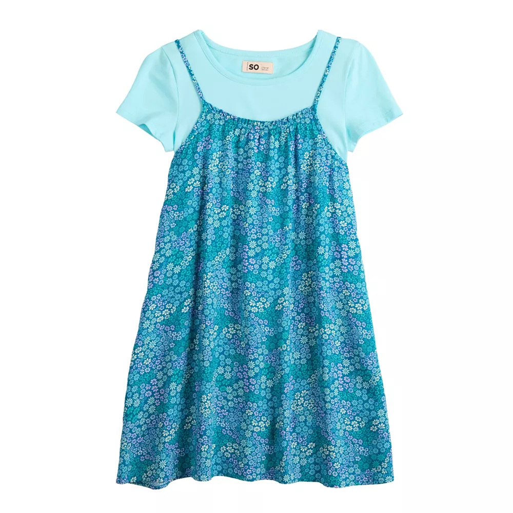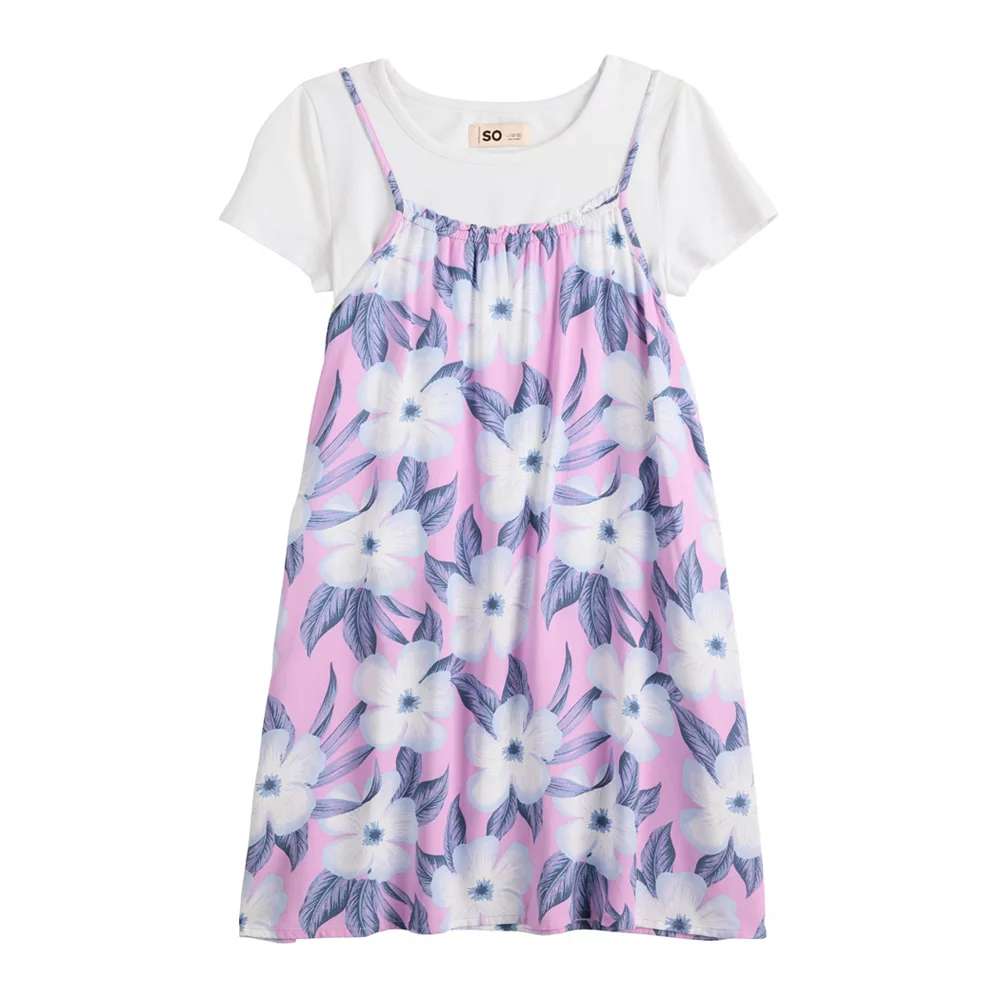 She’ll love representing trendy 90s fashion with this girls’ SO Favorite slip dress and tee.