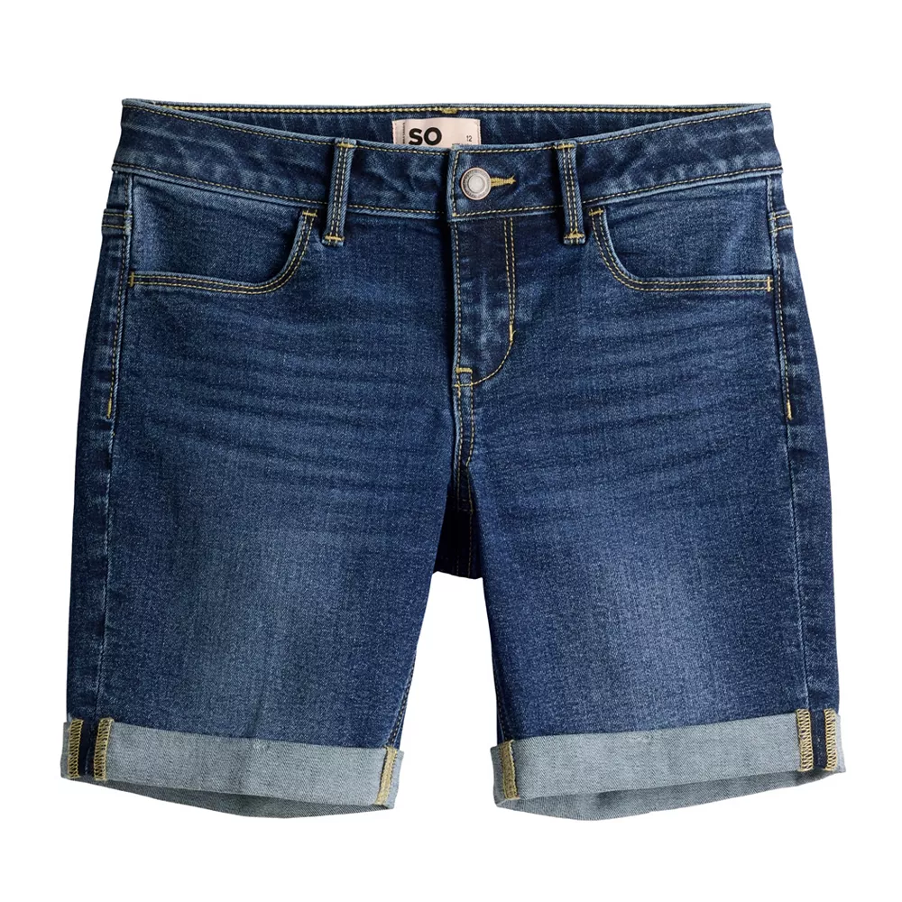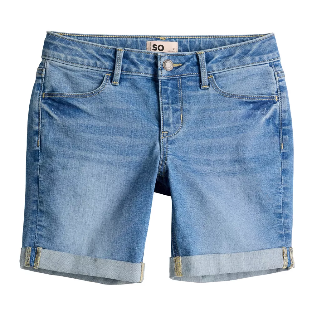 Give her cute coverage for warm weather days with these girls’ cuffed Bermuda shorts from SO.