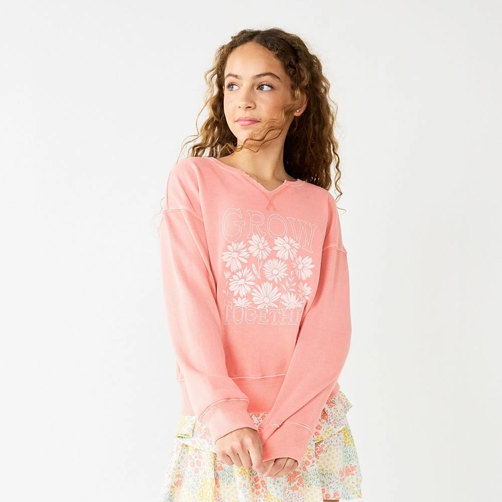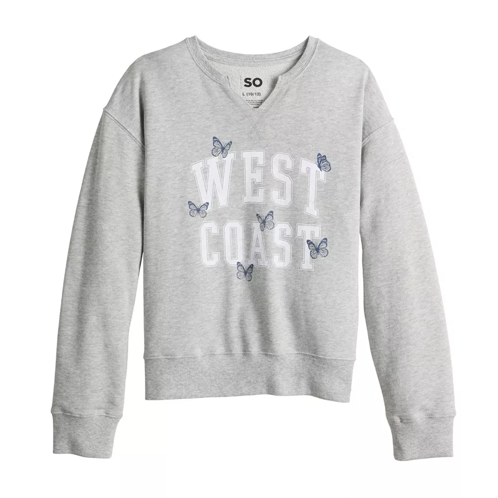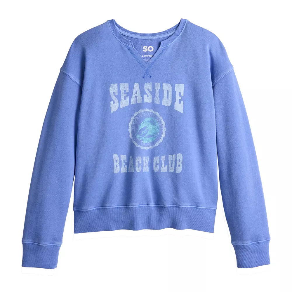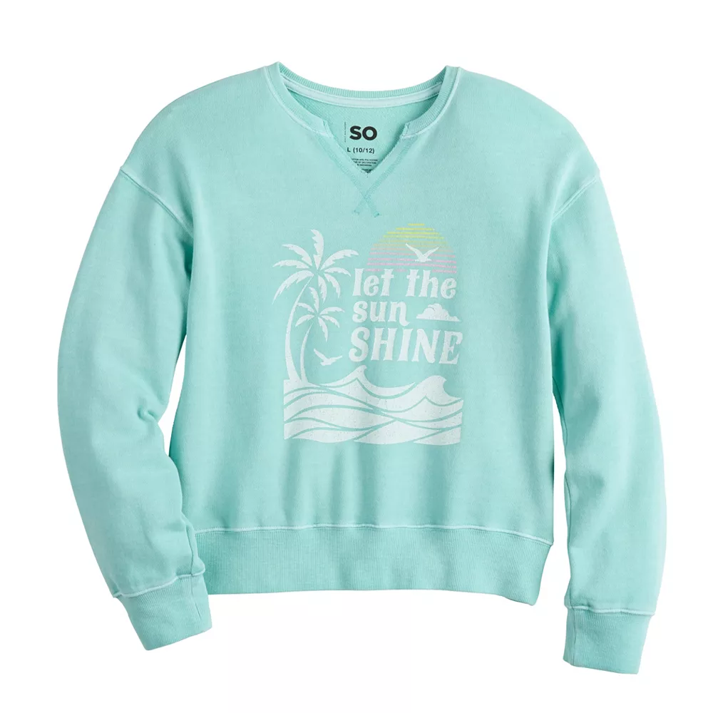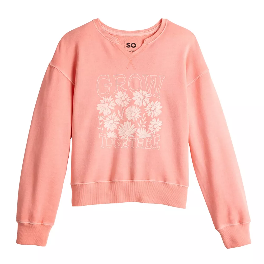 SO defines ultimate comfort and cozy style with this girls’ notch-neck pullover sweatshirt.