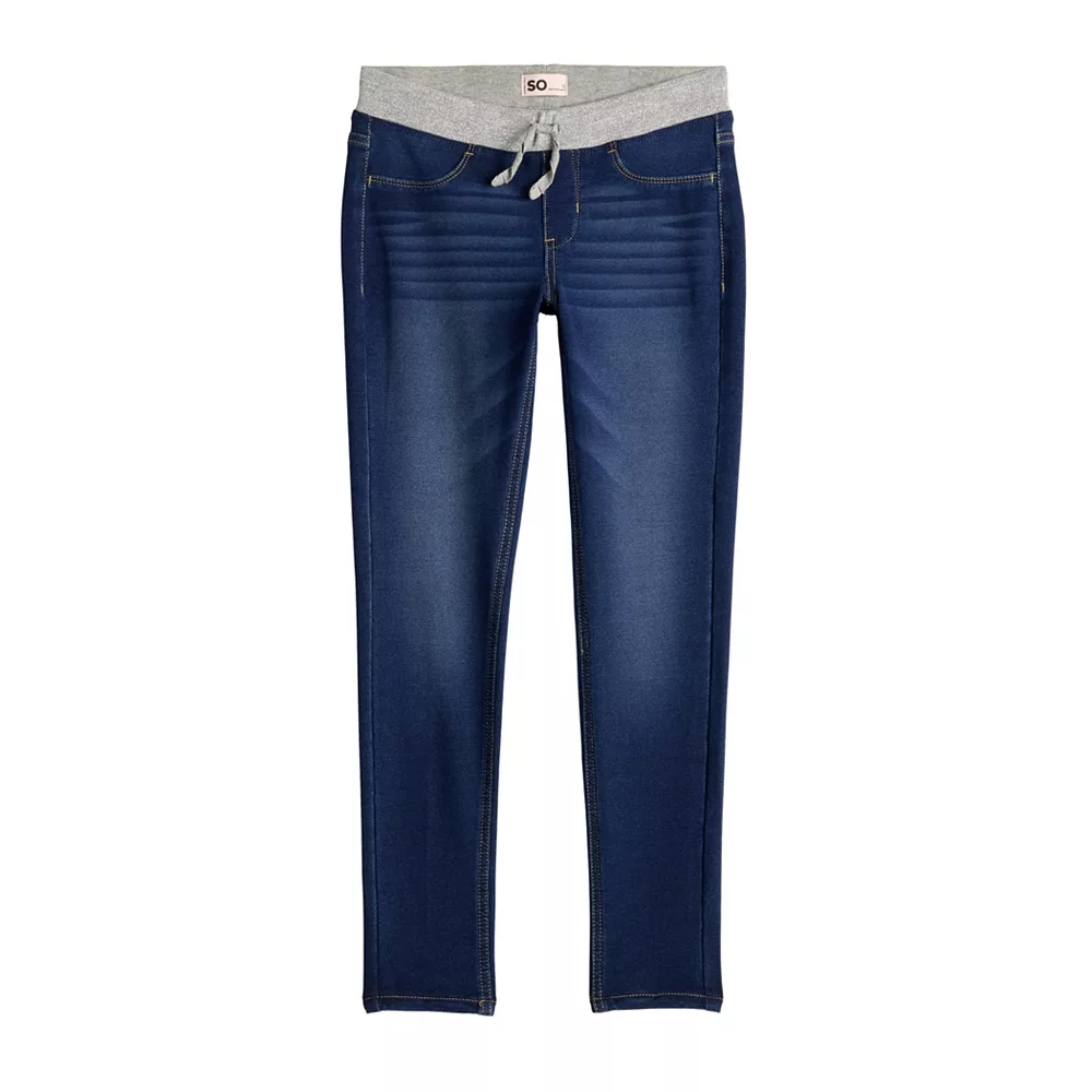 SO defines cute style and all-day comfort with these girls’ rib-waist skinny jeggings.