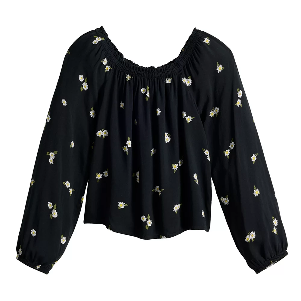 A feminine peasant-inspired design makes this girls’ SO square neck top a lovely choice.