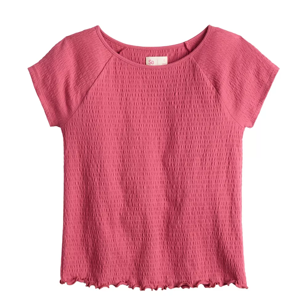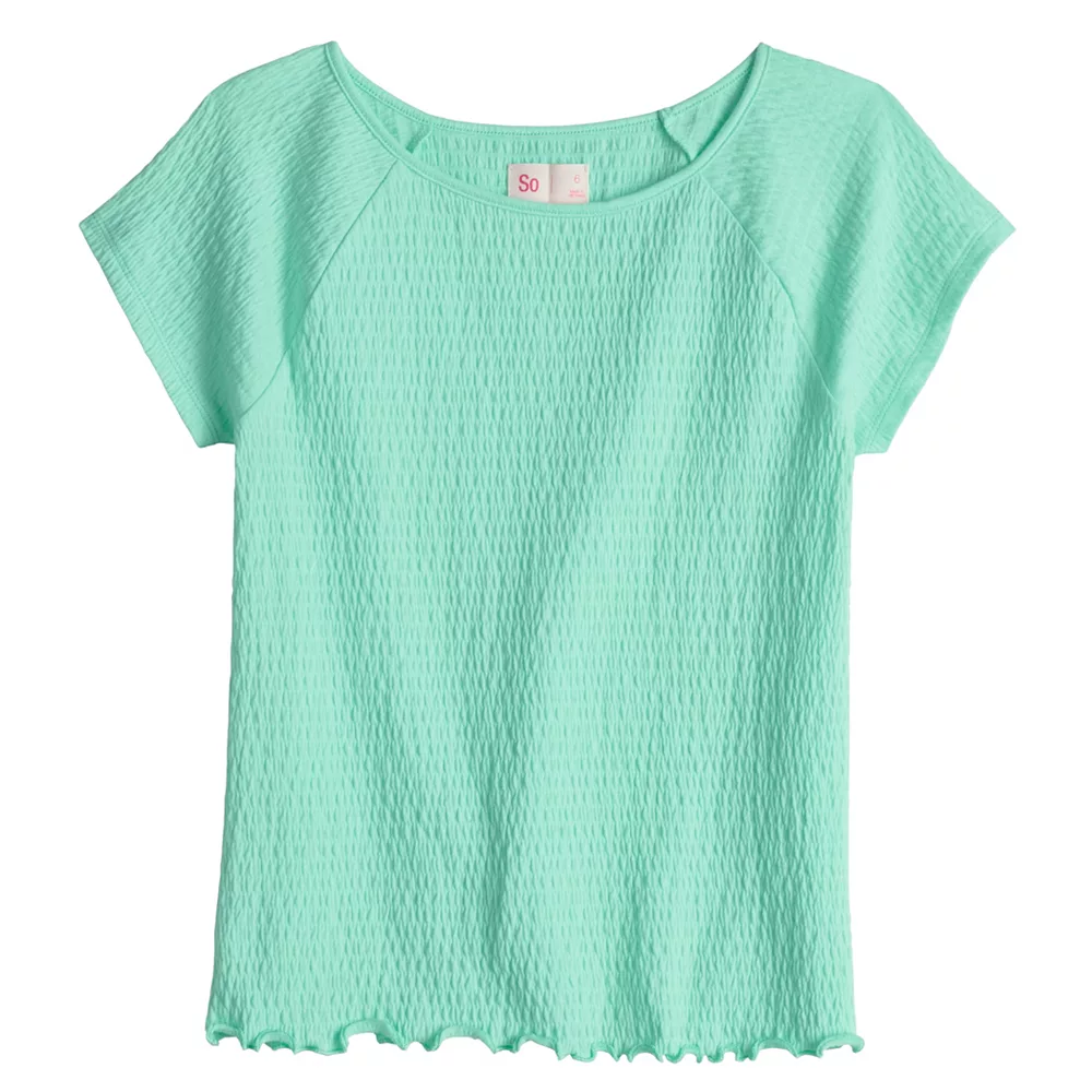 SO defines cute style with this girls’ textured lettuce-edge tee.