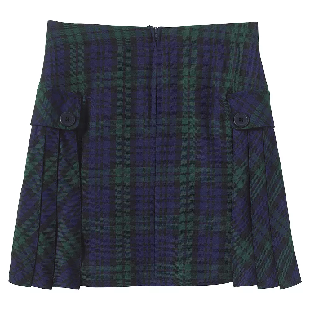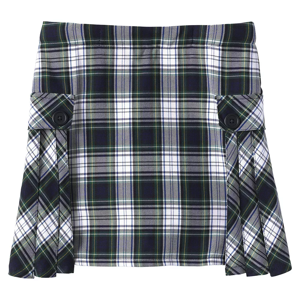 Easy and neat looking, this girls’ Lands’ End side pleat plaid skort is perfect for everyday wear.