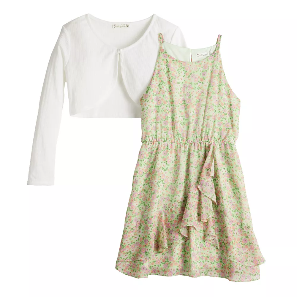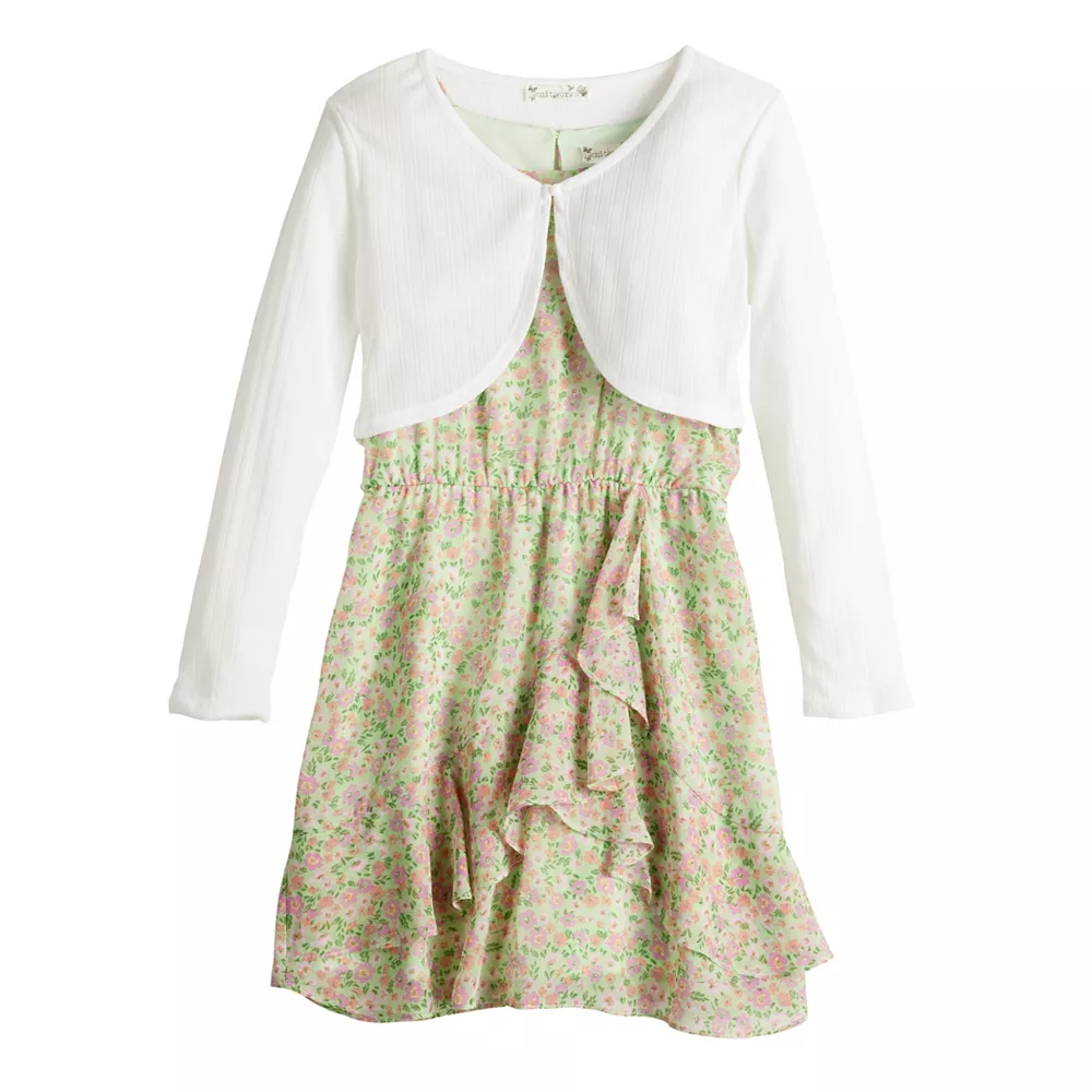 She’ll love the feminine style of this girls’ Knit Works ruffle cardigan dress and bolero set.