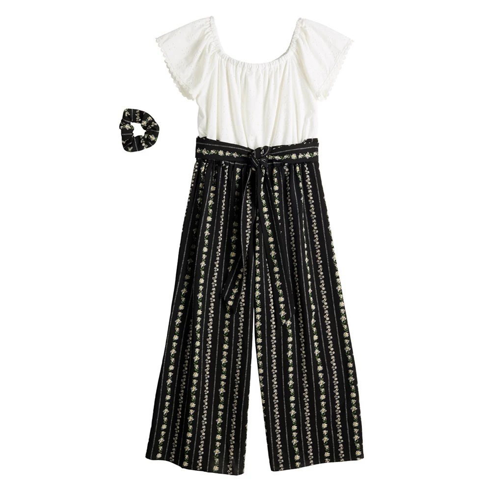 Your fashion-forward girl will love the chic look of this girls’ Knit Works paperbag jumpsuit and coordinating scrunchies.